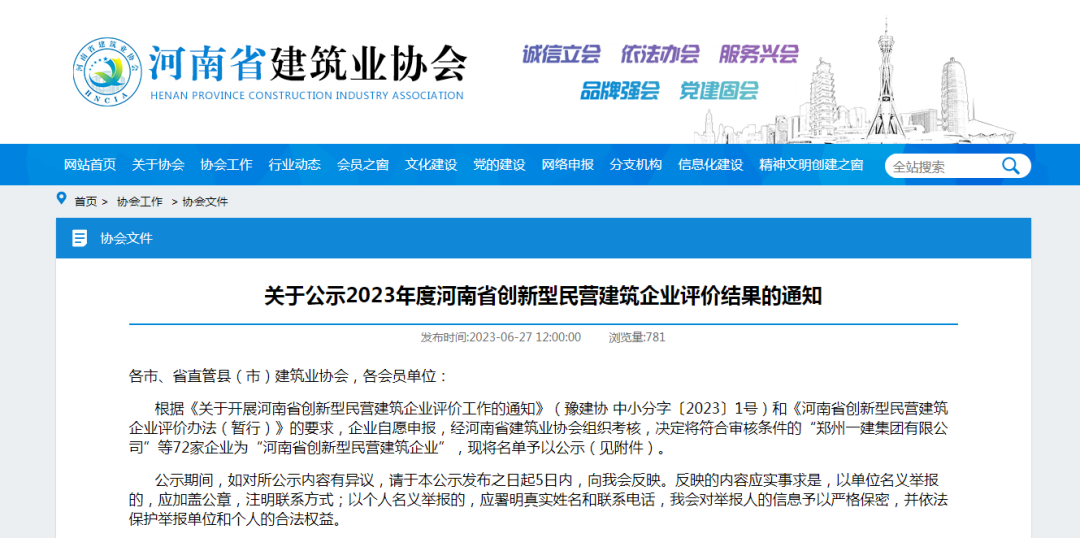 河南安居建設(shè)有限公司榮獲2023年度河南省創(chuàng)新性民營建筑企業(yè)